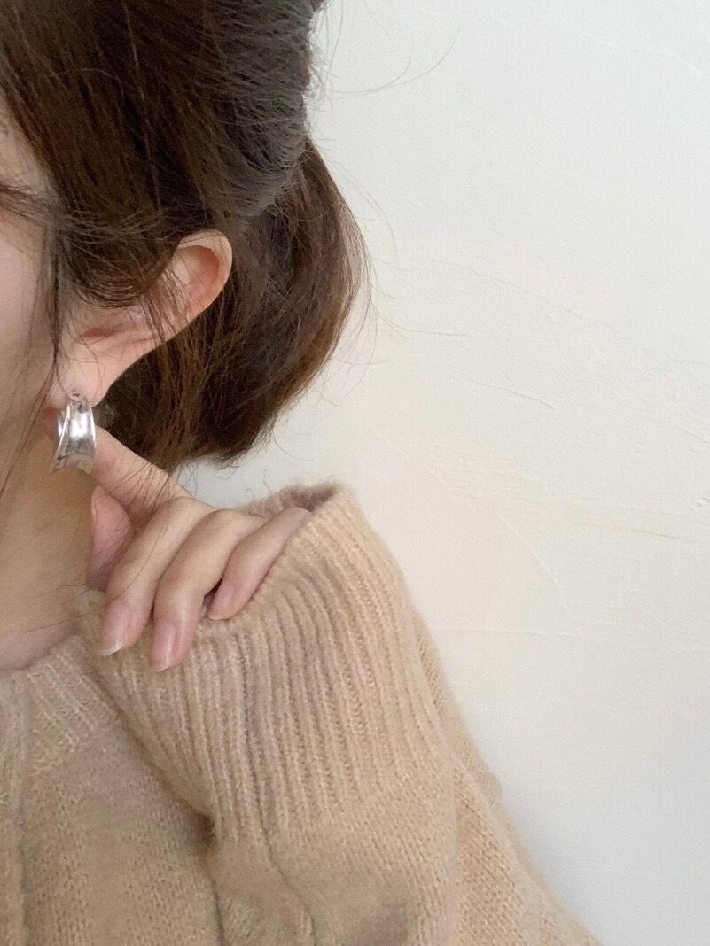 matte texture round pierced earrings